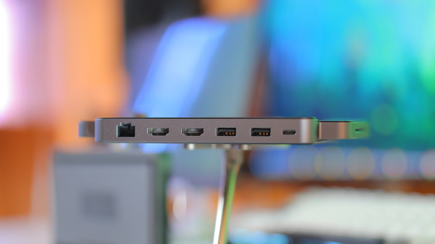 With multiple external HDDS, SSDs, Keyboard, Mouse and other peripherals, I can confirm that everything works really well, and Mind is stable even if you use it to the max. You can also connect headphones and IEMS with a 3.5mm jack to the Dock, or use its speakers, but the speakers are minimalist. This being said, they have proven to be excellent for me and my wife. When we wanted to have a quiet night in the kitchen, I cooked some nice teriyaki chicken and we watched some comedy shows on an Azorpa Z1FC Display, using the Speakers of the Mind Dock. Those speakers sound better than the speakers on the portable monitor, and the whole thing was brilliant as I could assemble the unit in less than a minute and get it running.