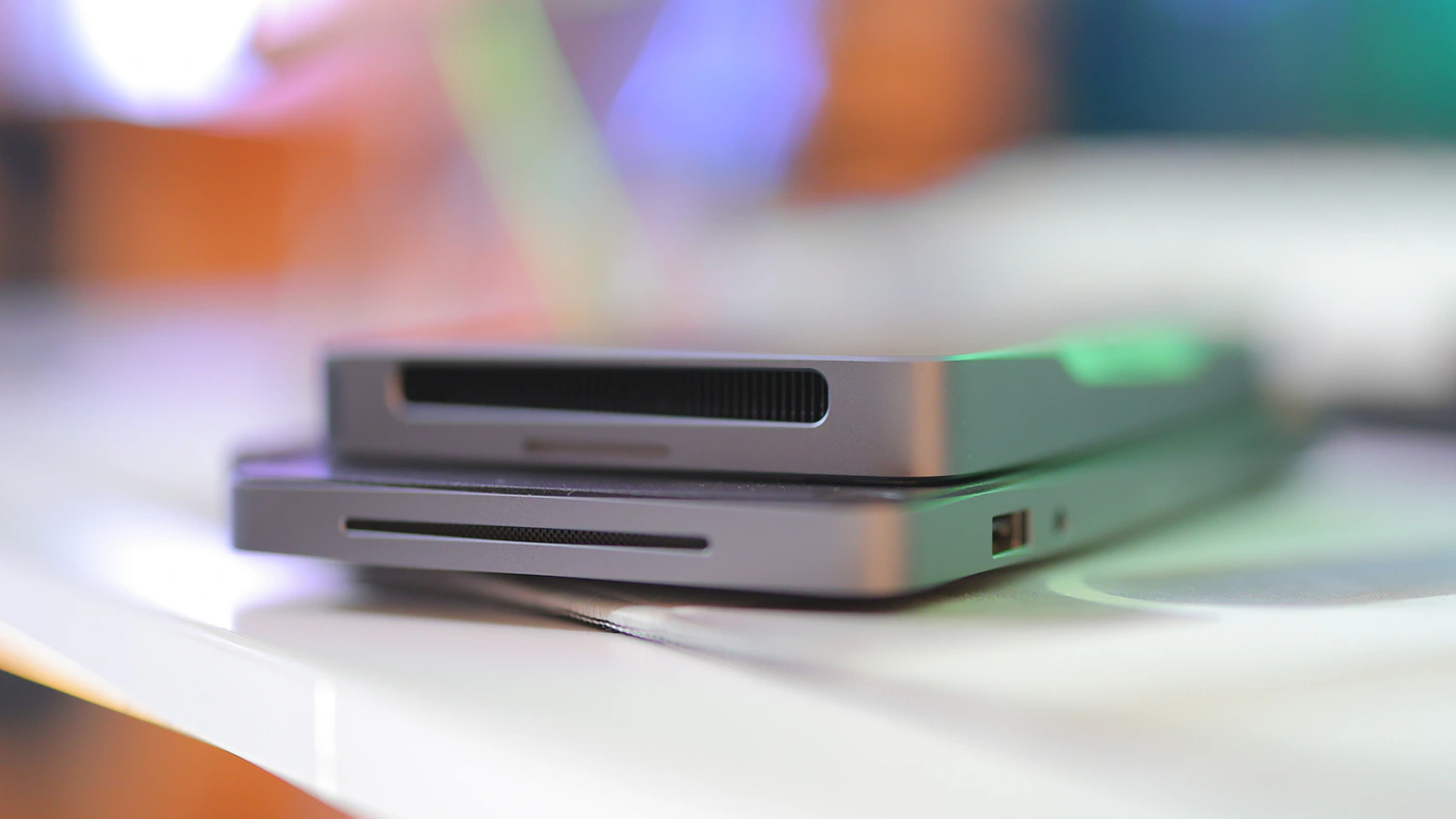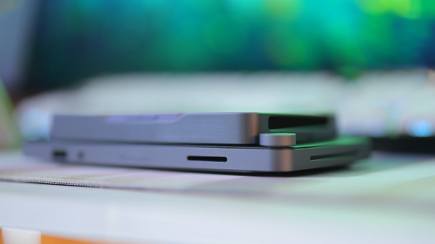 Combined with the fact that Mind 1 is snappy and fast, has a stable SSD performance, high system performance, and fast RAM, and that the two communicate between them via a PCIe 5.0 link, you will literally extend the abilities of the Mind a ton. I actually sometimes just take both with me, as they are magnetic and just stick together, so even when I am outdoors I have access to the full usability of the Mind via the Dock.